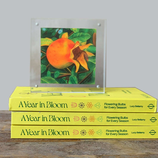 Golden Pomegranate Acrylic Framed Art Print