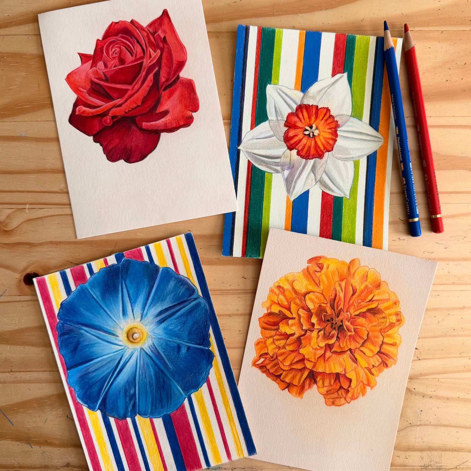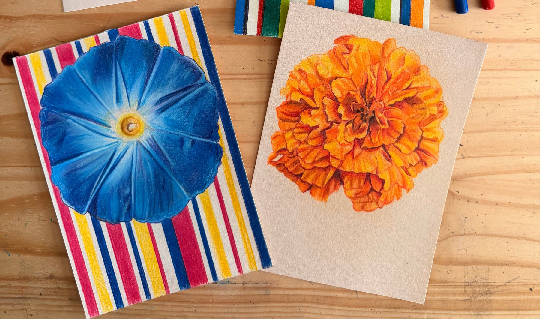 Hand-drawn colored pencil originals, inspired by the quiet flowers that shaped our memories—of home, childhood, and her.